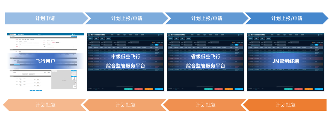 系统以“全流程闭环管理”为核心,覆盖低空空域辅助规划、临时空域审批、低空空域动态管理、飞行计划报批、低空空域空情监视与告警、空域特殊情况应急处置、空域效能运行评估、信息服务及统一安全认证与管理等九大功能模块。通过功能间的协同联动,形成从空域规划到飞行结束的全周期管理链条,确保低空运行“看得见、管得好、控得住”。