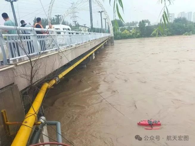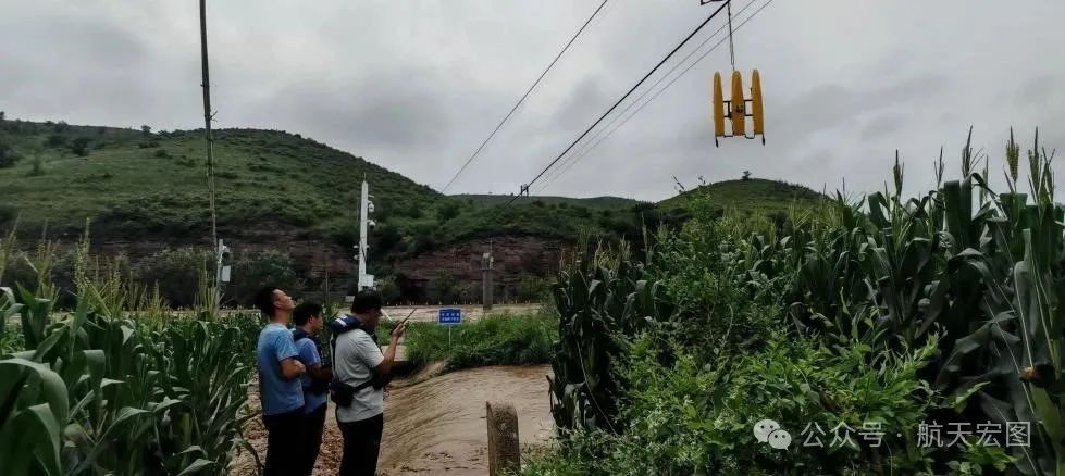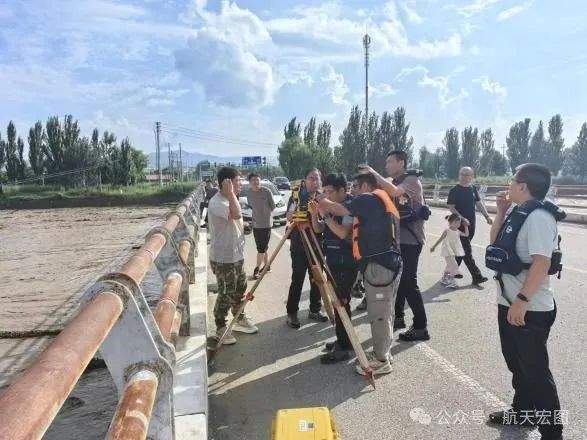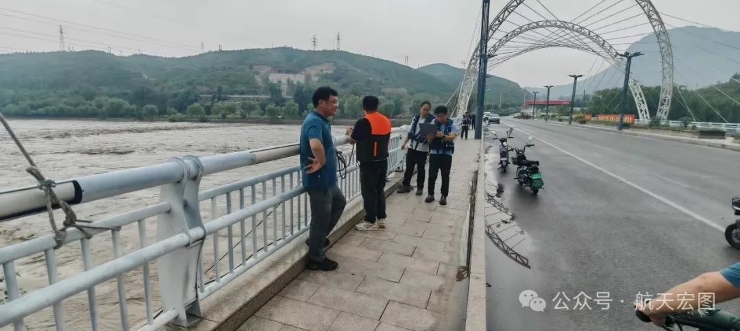 航天宏图防汛一线人员首战东房子监测断面,面对原有设备失效的紧急情况,项目组采用无人机航测技术,快速传回第一组关键水情数据,为防汛指挥赢得宝贵时间。