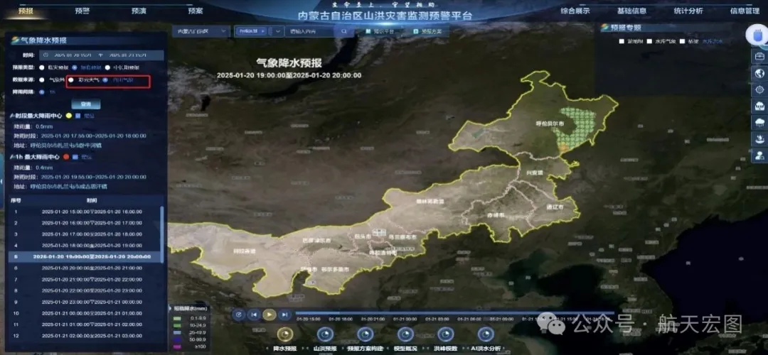 山洪,堪称山区居民的 “头号杀手”,其爆发往往在转瞬之间,便能对生命与财产安全构成致命威胁。在内蒙古,航天宏图用前沿科技打造了一座坚固的“数字堤坝”——山洪灾害监测预警平台,并在内蒙、甘肃等地区落地应用,为当地的山洪灾害防御提供了强有力的技术支撑。它是如何从“被动救灾”转向“主动防御”?又是如何用“黑科技”守护一方平安?一起来看! 一 痛点: 山洪凶猛,分秒必争 山洪灾害突发性强、破坏力大、成灾快,直接威胁人民群众生命安全、基础设施和社会稳定。关键时刻,快一秒预警,就能少一分损失。传统依赖经验的防御方式,在瞬息万变的灾害面前显得力不从心。 二 解决方案: 山洪灾害监测预警平台,科技赋能智慧防汛 航天宏图凭借在数字孪生、大数据、人工智能等领域的深厚积累,为内蒙古量身打造了山洪灾害监测预警平台。平台的核心是“四预”能力(预报、预警、预演、预案),实现了山洪防御的智能化升级: 1、预报更精准:“算”出风险,抢占先机 融合创新:不再是单一模型!平台巧妙融合了多种洪水预报模型,结合雷达实时雨量监测和未来2小时降雨预测,就像给每一个小流域装上了“定制化大脑”。 融合雷达面雨量监测可视化 2、预警更及时:分级推送,触达无忧 五级递进:独创“预报预警→临近预警→监测预警→精细预警→解除预警”五阶段模式,实现山洪预警的递进式预警,覆盖灾害全过程。 全域覆盖:不仅关注气象风险,更紧盯重要基础设施(如淤地坝)等关键点,不留死角。 秒级触达:预警信息通过手机APP、现场监测站等多渠道瞬间发出,直达责任人。 智能闭环:基于山洪知识图谱,预警一旦发出,系统自动向相关责任单位和人员推送具体任务,并实时跟踪反馈,形成管理闭环。 多阶段递进式预警 3、预演更真实:数字孪生流域防洪,眼见为“实” 运用数字孪生技术,构建了高精度的“内蒙古数字河流水系”。平台集成复杂数学模型,能在虚拟世界中高保真模拟洪水演进过程,支撑防洪决策。 精细化预演 4、预案更科学:协同联动,高效处置 平台实现预案处置流程管理、处置建议推送、任务管理与跟踪。可通过预案体系图直观展示预案结构,便于理解和执行。 预案管理 三 成效显著: 从“经验防御”到“科技防御”的跨越 预警又快又准:整合气象、水利、应急多部门数据,应用数字孪生和AI智能分析,预警精准度和时效性大幅提升,为防灾避险争取宝贵时间。 科技硬核赋能:集成卫星遥感、无人机巡查、智能视频分析等能力,实现河道24小时“天眼”监控,险情快速识别。打造国内领先的防洪“四预”业务平台,精细化流域模型让洪水模拟更贴近真实场景。 筑牢生命防线:通过提前预警、精准调度、科学预演,平台有效降低了山洪灾害造成的人员伤亡、财产损失和对基础设施的破坏,真正用科技守护生命安全。 航天宏图研发的山洪灾害监测预警平台,是数字孪生技术与防汛业务深度融合的典范。它以“四预”为核心,实现了山洪防御从被动应对到主动出击的智能化转型,显著提升了应对山洪灾害的“硬实力”。 这不仅是技术的胜利,更是对“人民至上、生命至上”理念的科技践行,为筑牢防汛安全屏障贡献航天宏图的智慧力量。