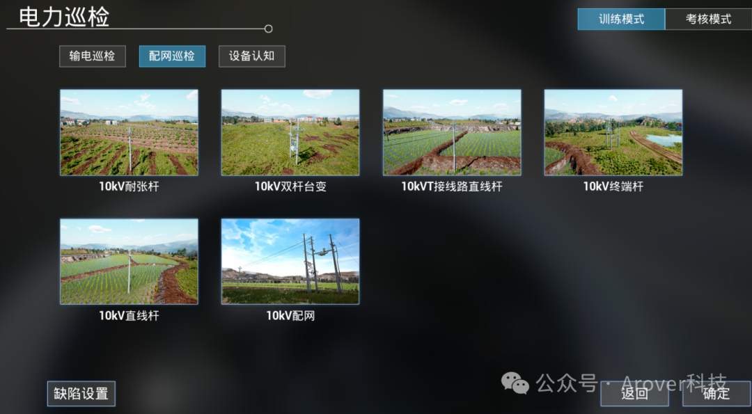 傲睿尔科技的无人机仿真模拟器针对电力巡检设有专项训练模块。该模块高度模拟真实电力巡检场景,涵盖不同电压等级的输电线路、变电站等。学员在模拟器上可以练习操控无人机在复杂电力设施环境中的飞行技巧,学习如何准确识别各类电力设备的故障隐患特征。