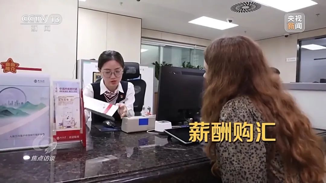 玛丽娜在深圳工作。以前,她把工资汇给家人时,每次都要带着厚厚的一沓材料到银行去办理。如今,她到银行办理“薪酬购汇”业务时,工作人员审核了相关材料后,她在手机银行上就能将工资兑换为外汇,转给国外的家人。
