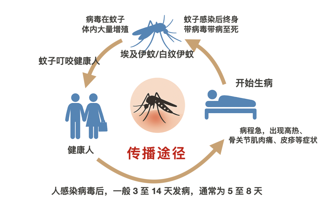 图片源自北京疾控中心,基孔肯雅热的传播途径
