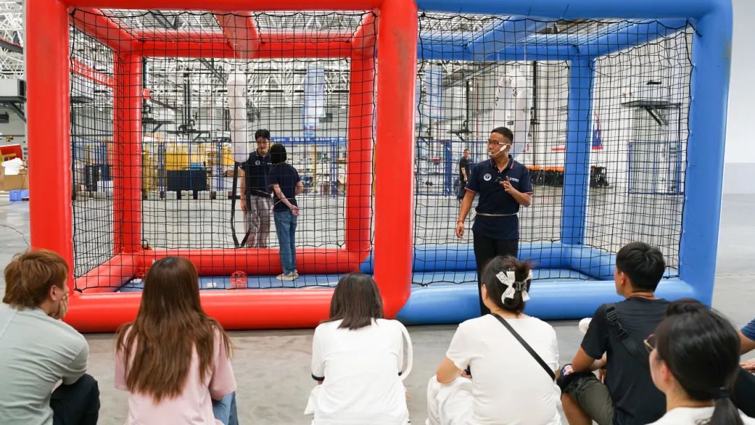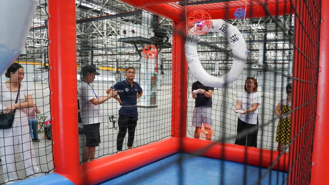 演示结束后,台湾青年在工作人员引导下,了解了航空航天及无人机领域的发展历史,相关图文资料与实物展示帮助他们梳理了该领域的发展脉络。随后,他们参与了VR模拟飞行及无人机实操驾驶体验,进一步感受航空科技的特点。在室内无人机足球体验赛中,台湾青年分组进行操控比赛,在互动中体验无人机科技的趣味性。