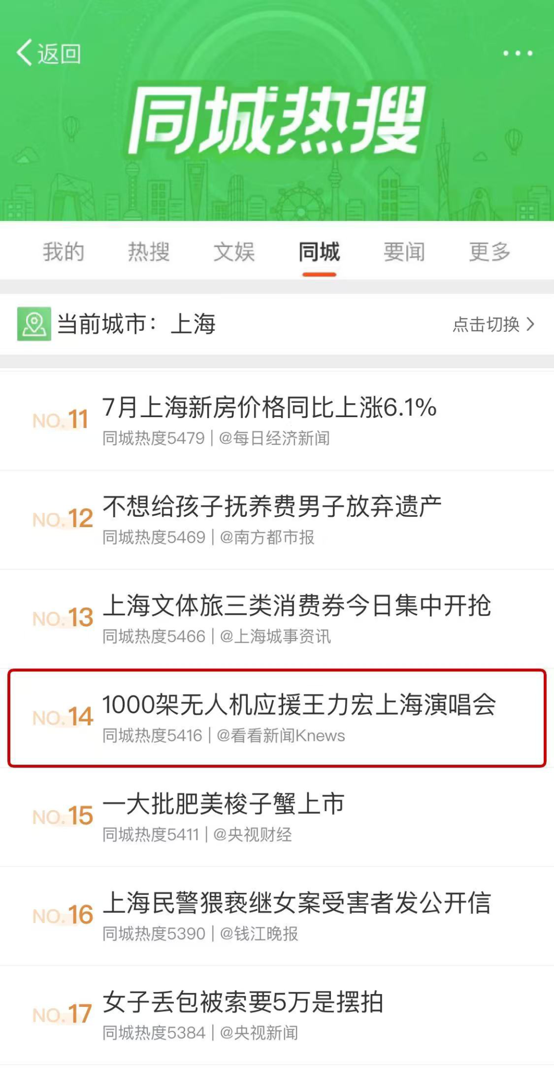 为偶像做一场无人机表演,并跟偶像一起观看表演是一种什么体验!在8月14日晚上海杨浦滨江,一场千架无人机表演为王力宏「最好的地方」巡回演唱会上海站造势。这场由千机科技策划并执行的惊喜,也是继今年4月杭州演唱会无人机表演后,王力宏巡演再次迎来空中“专属彩蛋”。