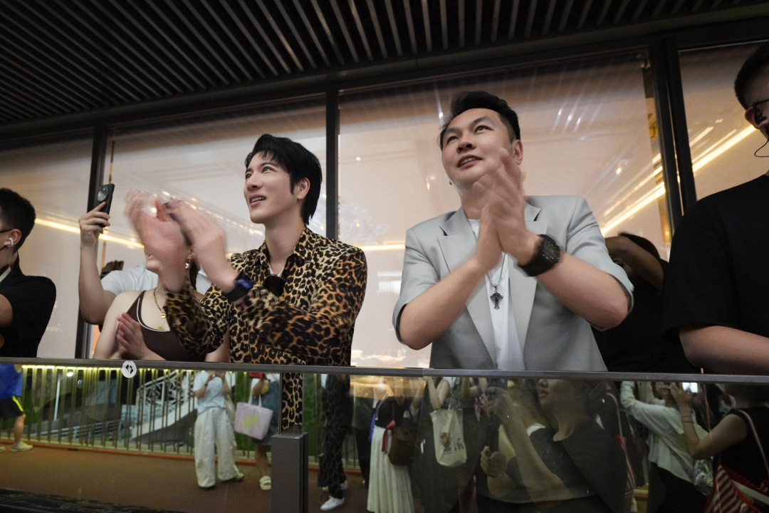 从《龙的传人》到《天地龙鳞》,王力宏用三十年音乐旅程为歌迷带来众多经典之作。活动当晚,王力宏惊喜现身观赏区,与在场粉丝并肩仰望夜空,共同观赏这场表演。面对这份别出心裁的“科技情书”,他不仅多次对着空中图案点赞称赞,还同步还原无人机呈现的经典手势。当看到巴哈姆特出现在夜空时,他难掩激动之情,频频鼓掌并表示“太漂亮了”,并表示这是他第一次这么近距离地观看无人机表演,太震撼了。现场粉丝情绪高涨,纷纷对着王力宏的方向呼喊“最好的地方就在上海”,提前为演唱会送上祝福。