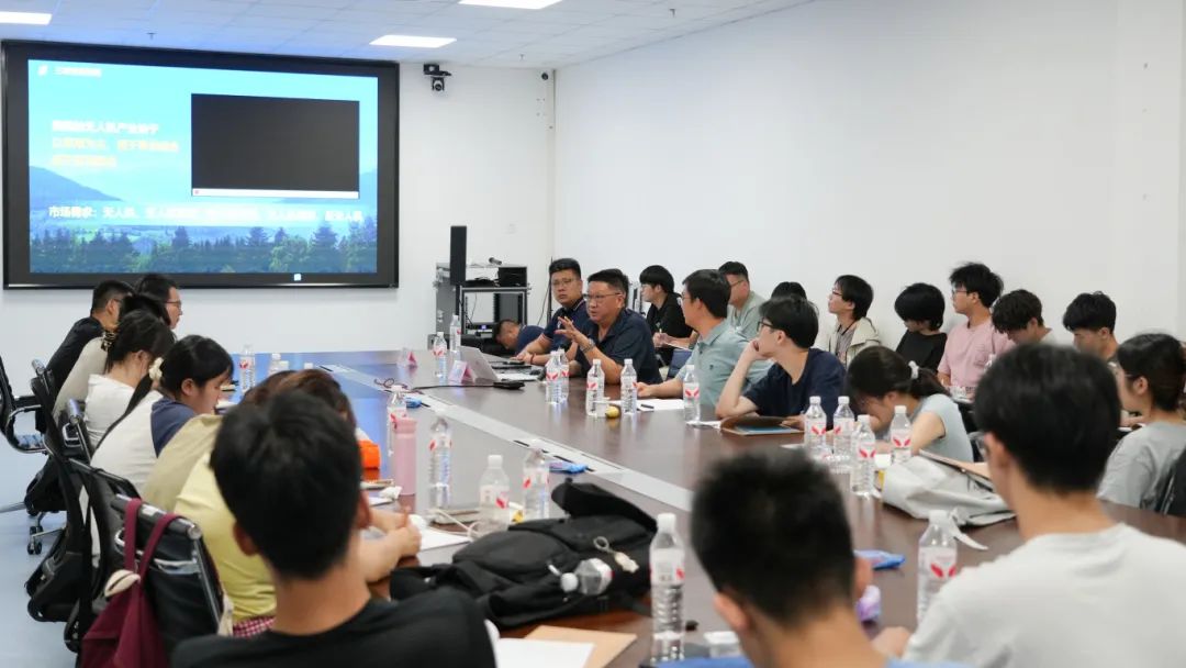 旭日蓝天董事长王重霄为学子们深入浅出地讲解了低空经济的发展现状、趋势以及重要意义,同时还系统介绍了无人机知识概论,让学子们对行业有了更宏观、更全面的认识。平台中心总监李威则为大家简单介绍了旭日蓝天自主开发的无人机系统平台,展示了企业在技术研发方面的硬核实力。