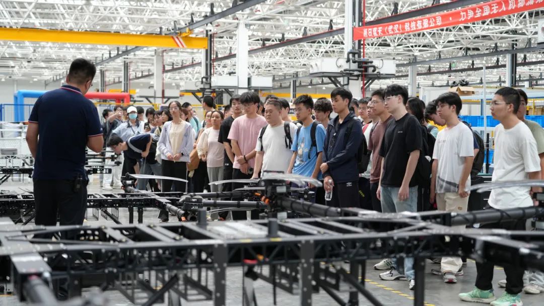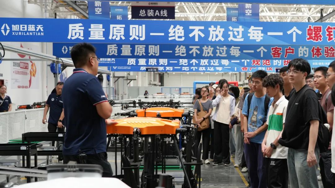 在生产车间,精密的零部件经过一道道严谨的工序,逐渐组装成一台台功能强大的无人机。随后,在企业展厅,学子们详细了解了旭日蓝天的发展历程、各类核心产品以及这些产品在农业、林业、测绘、应急救援等多个领域的广泛应用,深刻感受到了企业在无人机行业的深厚底蕴与创新实力。