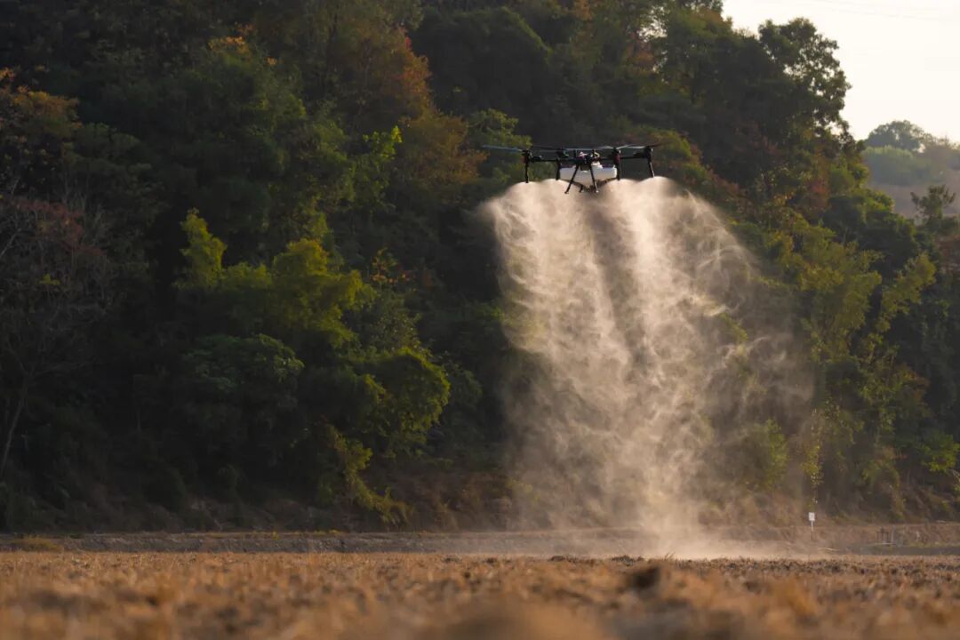 接着,农业无人飞机从空中精准播种,短短 5 个小时,就在百亩良田撒下了均匀的种子。