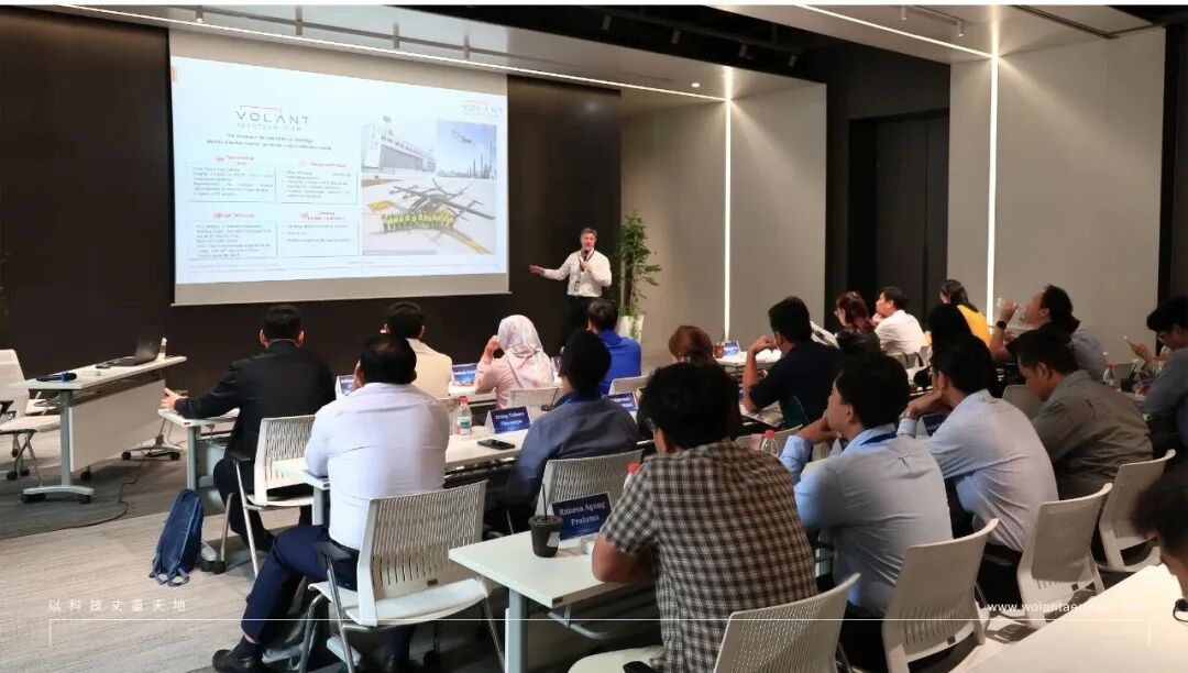 9月10日,2025中国-东盟民航管理能力提升研修班——来自柬埔寨、印度尼西亚、老挝、马来西亚、缅甸、新加坡、泰国、越南等国家的20名学员访问Volant沃兰特,了解中国的低空经济发展近况及优秀的载人eVTOL产品。沃兰特首席设计师Duncan Trevor对VE25-100天行的设计理念与性能优势进行了详细介绍,并同各国成员交流了东盟地区的eVTOL应用场景、适航互认等话题。