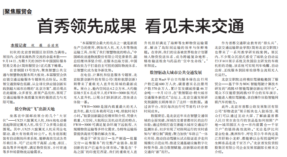 新华社报道:服贸会上看低空经济 电信网络铺就信息“天路”