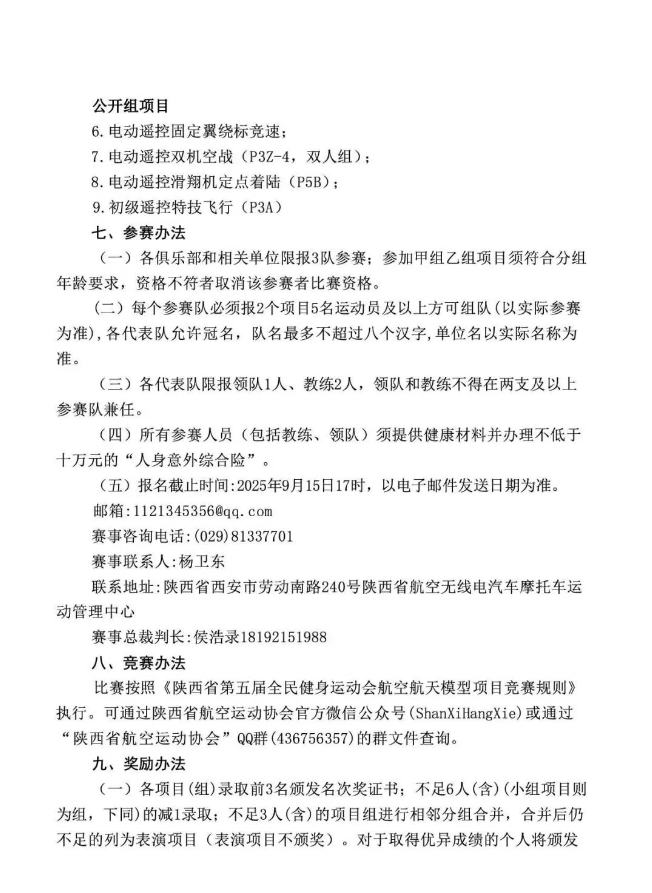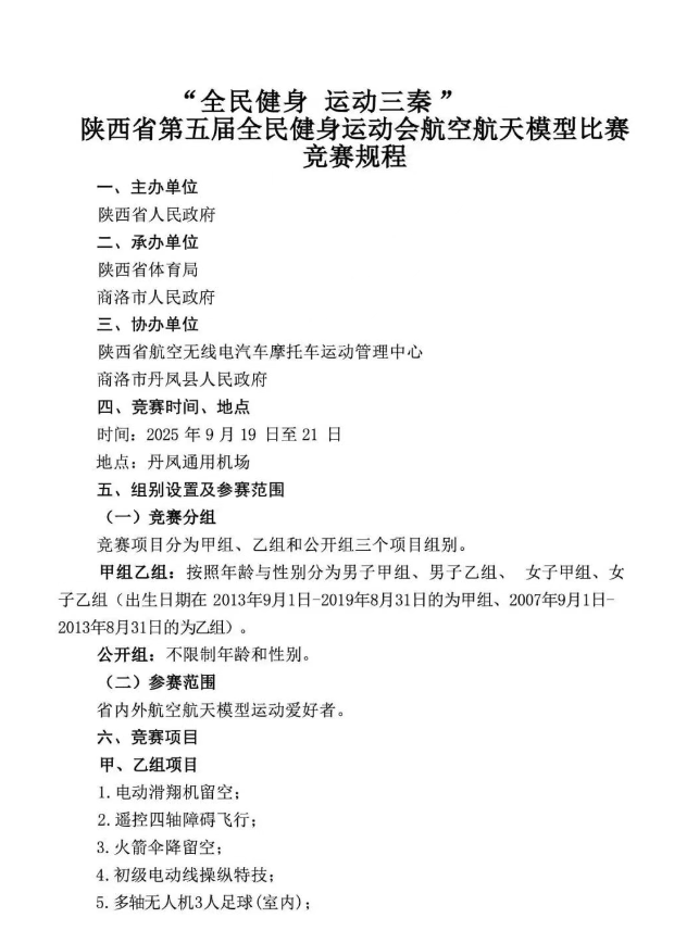 通知|陕西省第五届全民健身运动会航空航天模型比赛即将开赛
