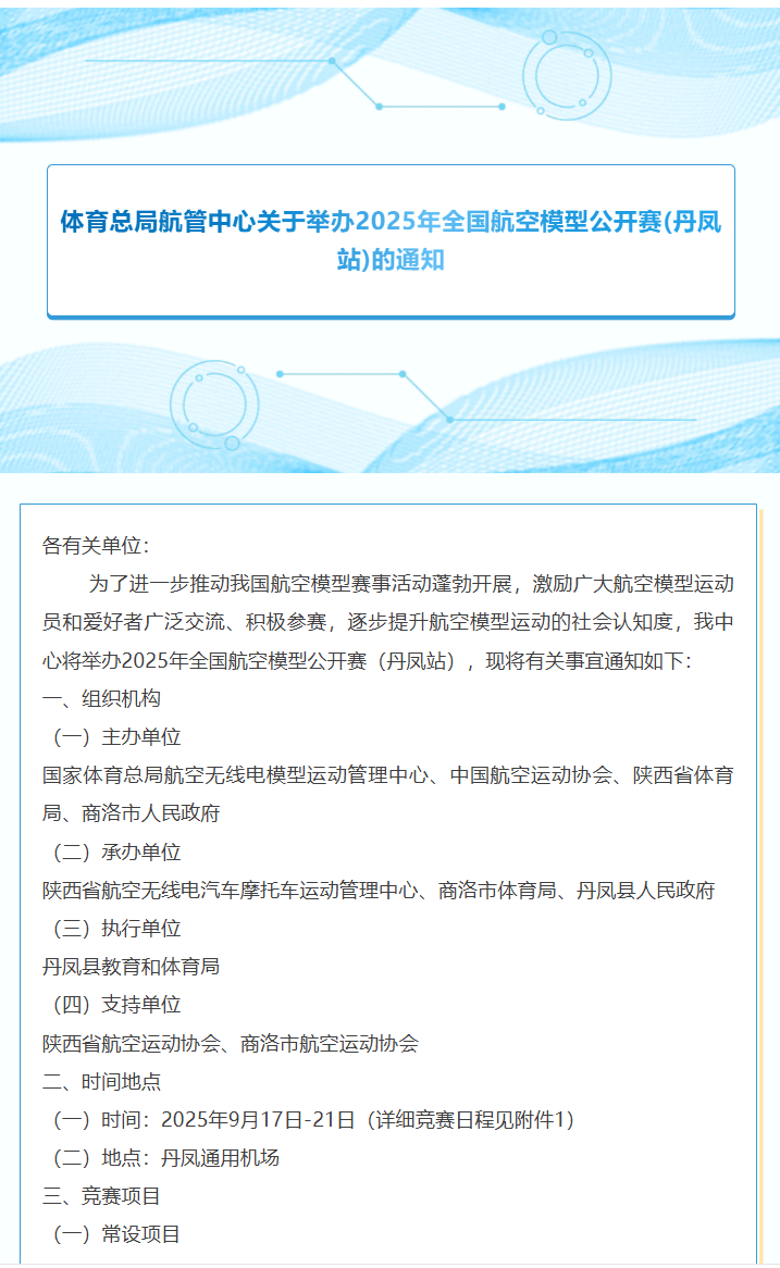 体育总局航管中心关于举办2025年全国航空模型公开赛(丹凤站)的通知