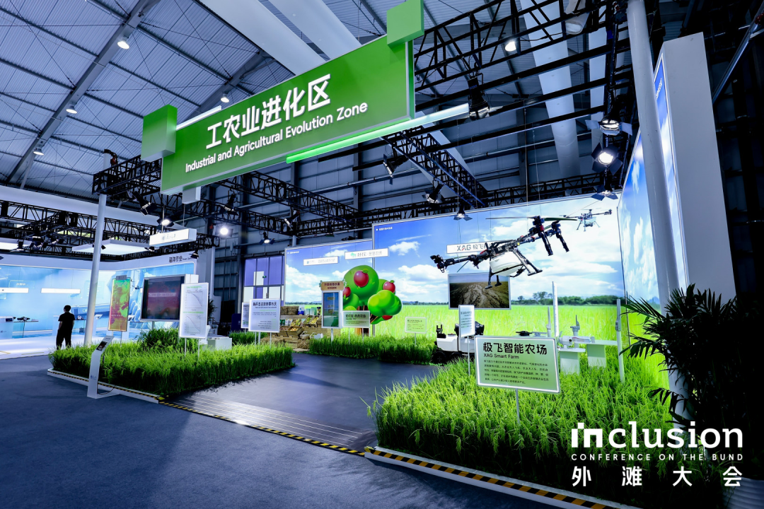 本届外滩大会展区涵盖“探索智能上限”“深入产业实践”“全球创新协作”三大主线,覆盖 LLM、通用人工智能、具身智能、AI+健康/出行/金融等多个前沿领域。极飞所在的展区,正是 AI 与农业深度融合的生动例证。