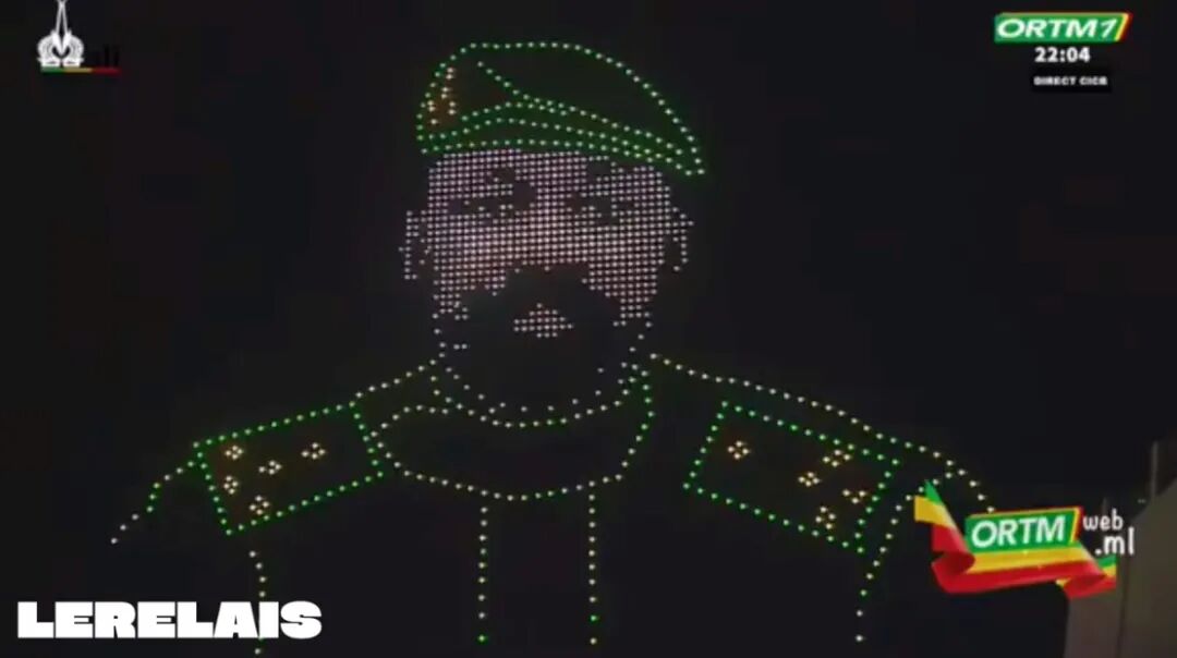 千架无人机腾空而起,勾勒出马里国家领导人的庄严形象,描绘出以黄金为代表的国家支柱产业的繁荣景象,以及当地极具特色的风土人情。