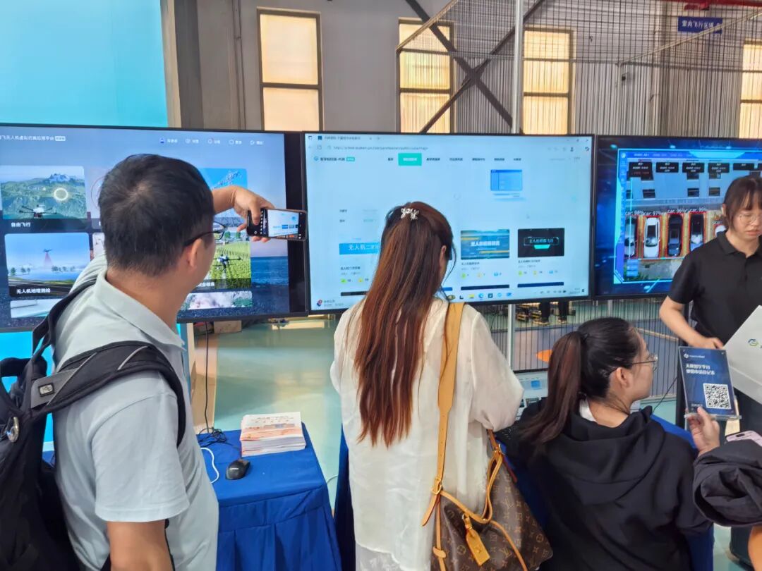 教学资源平台的现场试用、虚拟仿真应用平台的模拟飞行,都给参会代表以难忘且超乎预期的参观体验,老师们纷纷扫码提交产品试用申请。