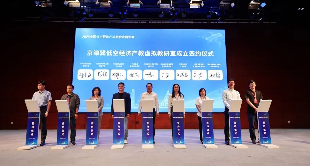 9月20日上午,大会同期进行了系列产教融合项目签约仪式。天翼科技等十八家单位代表共同参与了京津冀低空经济产教虚拟教研室成立签约仪式。
