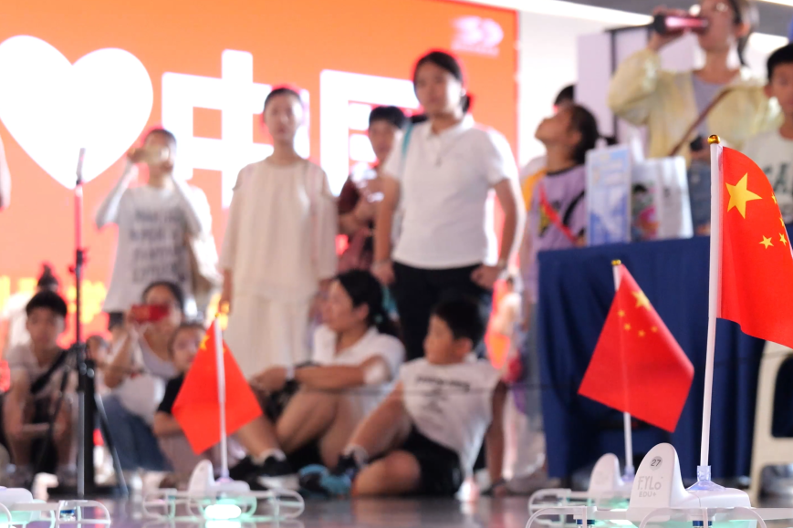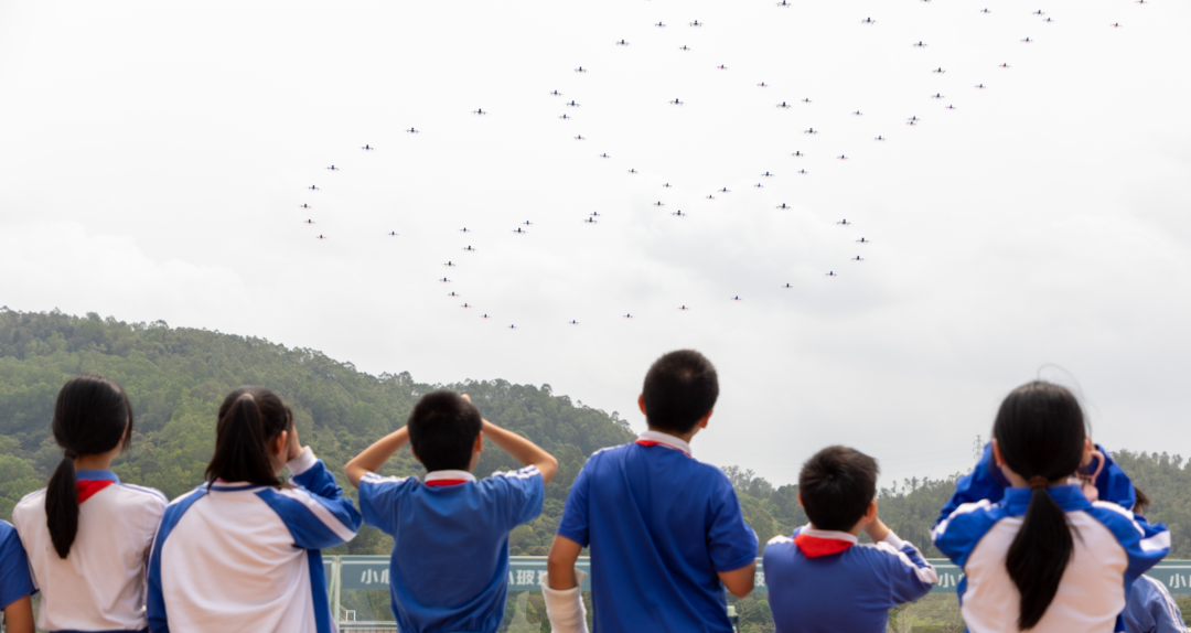 国庆明星产品riff无人机为孩子们带来震撼的集群编队表演,让孩子们心中对科技的向往愈发强烈。