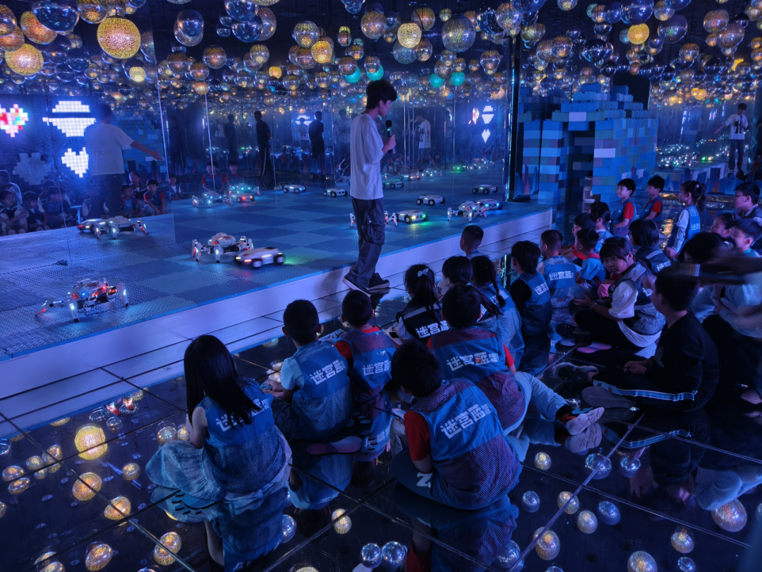 福田区的深鹏派 MECHA SKY 潮玩科学馆,简直是孩子们的欢乐天堂。机器人舞台,无人车竞技,无人机操控,让孩子们看得目不转睛,玩的不亦乐乎。