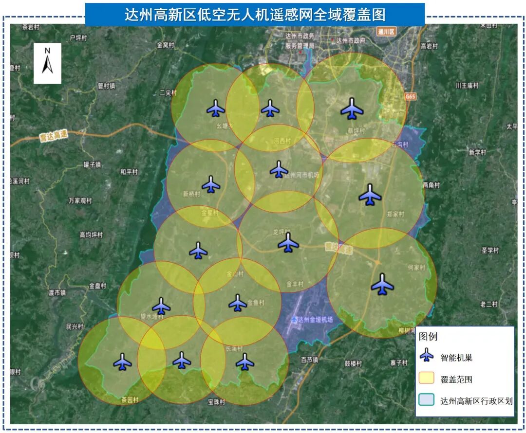 据达州星特低空建设发展有限公司负责人张庭兵介绍,该项目通过14个智能基站的科学布局,实现了对斌郎街道、石板街道、河市镇、金垭镇、幺塘乡等5个乡镇(街道)的全域覆盖。