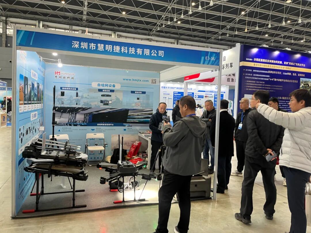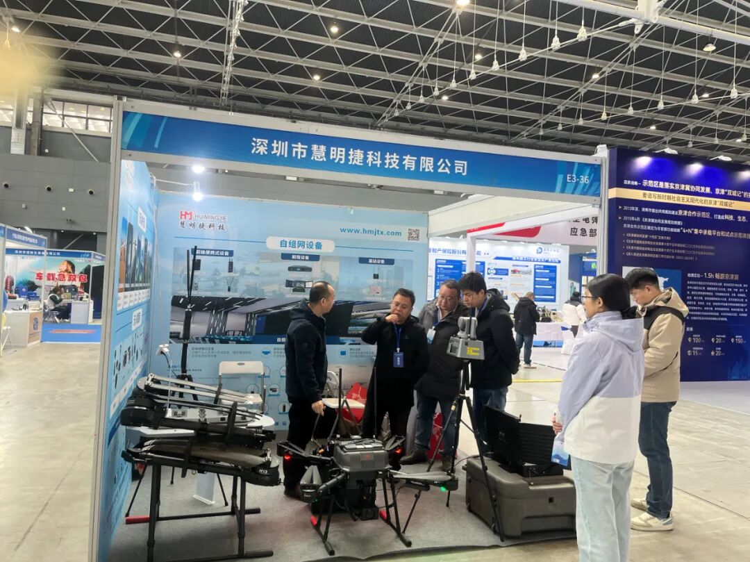 在这场行业盛会上,慧明捷的展位无疑成为展区的焦点之一。本次参展,慧明捷重点展示了50KG灭火自组网无人机、侦查自组网无人机以及自组网通信设备,全方位展现了自组网技术在应急救援场景中的硬核实力。