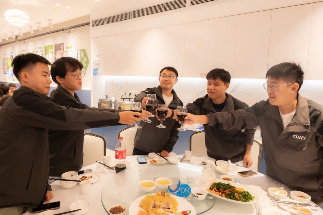 华灯初上,盛典的喜悦在温馨的公司聚餐中延续。大家举杯同庆,共同展望未来。