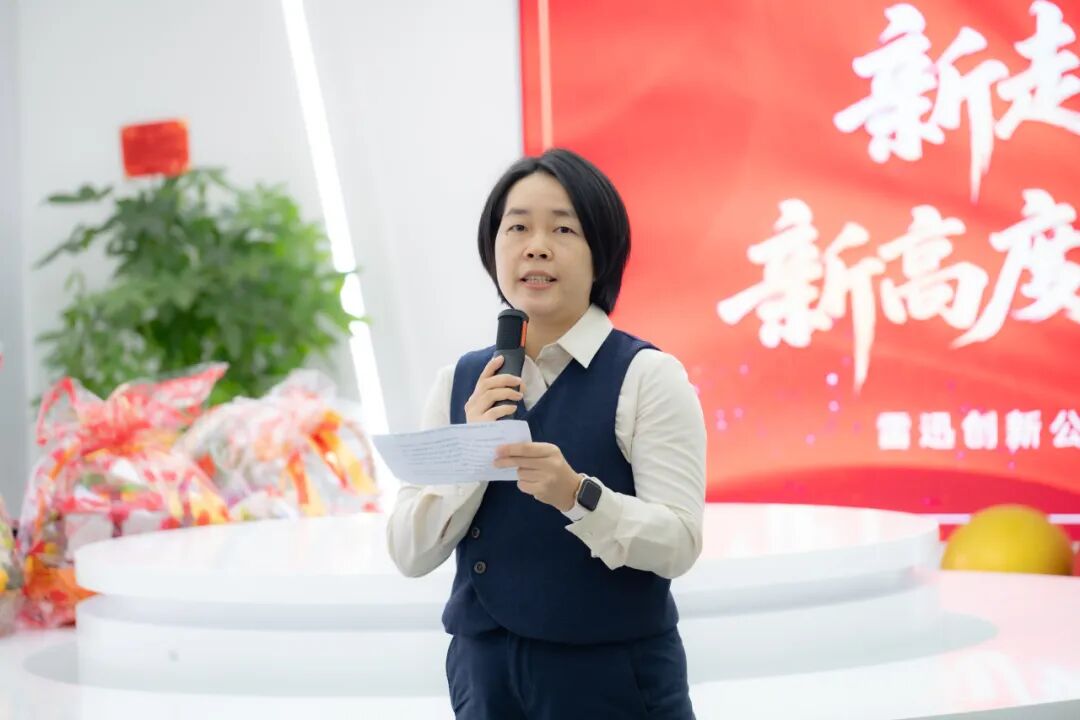 王总回顾了公司的发展历程,并向全体员工的辛勤付出、合作伙伴与社会各界的支持信赖致以诚挚谢意。雷迅创新办公室从原有的498平方米到如今1842平方米的跨越,不仅是面积的扩展,更是公司实力与影响力的直观体现。
