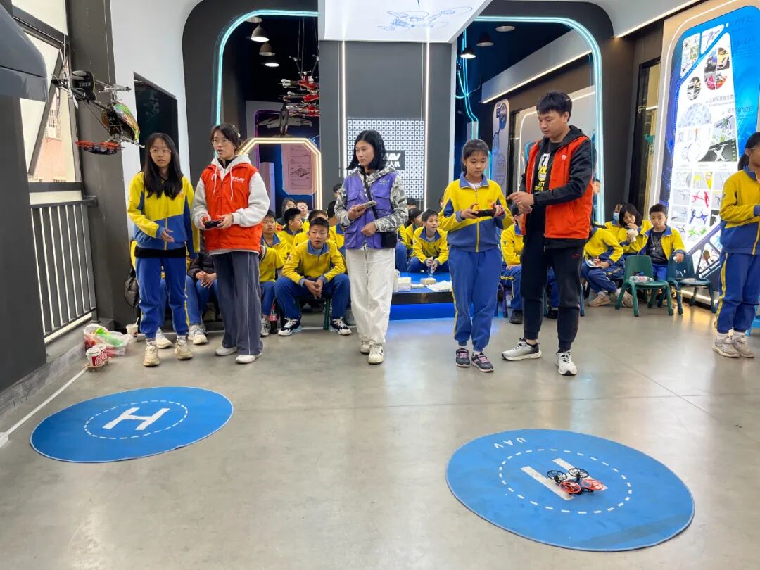 活动在震撼表演中推向高潮:F3P无人机空中翻滚,苏27战机模型低空盘旋,穿越机如闪电疾驰。最后,无人机携五彩礼花腾空绽放,为研学画上完美句号。