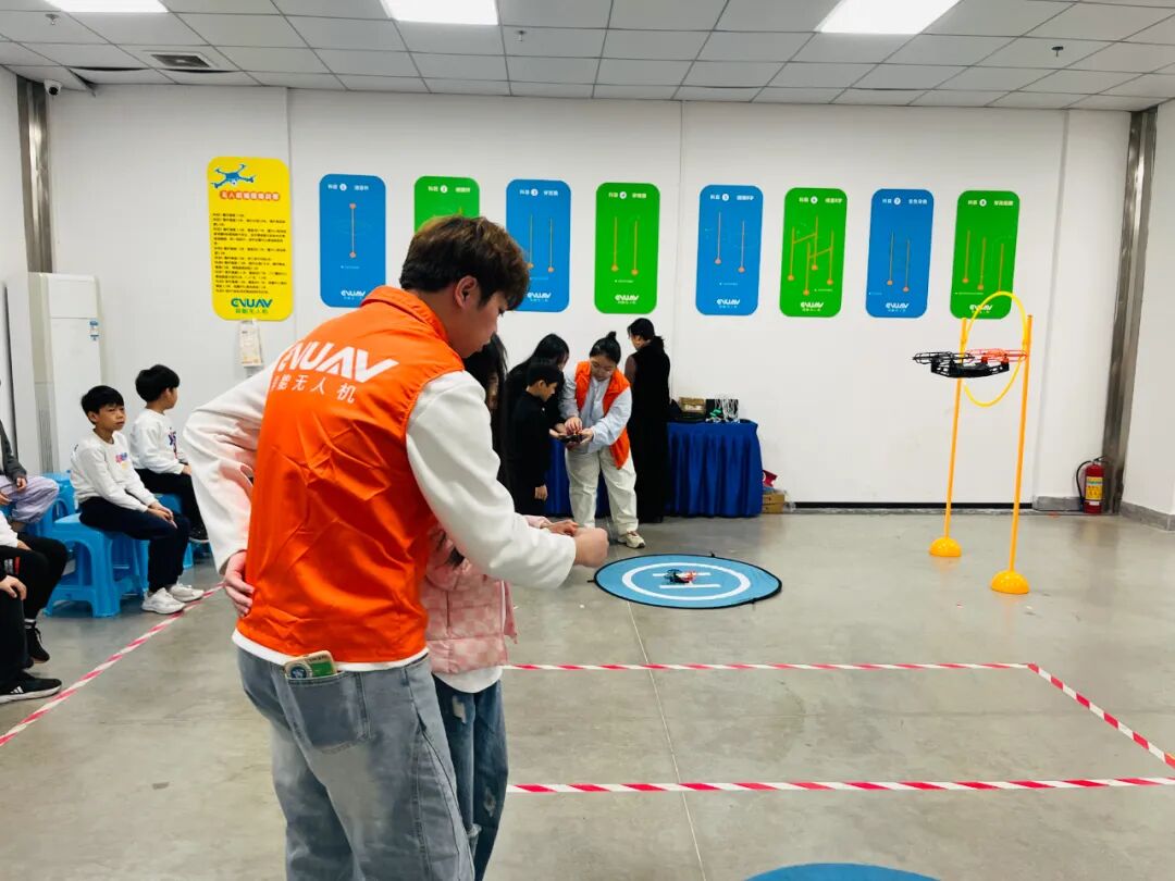 实操飞行环节将活动推向高潮。“左手控制高低,右手负责前后左右,轻轻推杆,保持平稳……”异能导师手把手教学,用简洁易懂的语言拆解操控技巧。在导师的耐心指导下,孩子们克服紧张,稳稳操控无人机穿过预设的障碍物,每一次成功穿越都伴随着阵阵欢呼,自信的笑容在脸上绽放。