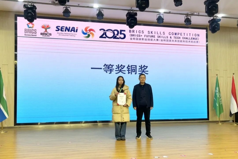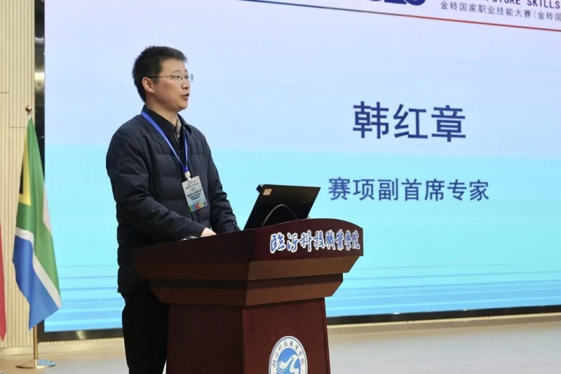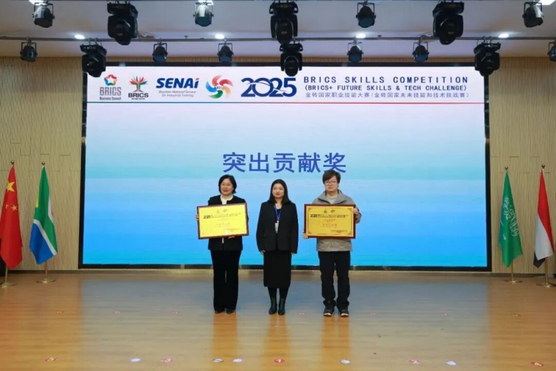 金砖国家职业技能大赛中方竞赛办公室主任崔雪艳同志致闭幕辞,她代表大赛组委会,向承办单位、技术支持方以及所有参赛师生致以诚挚感谢,并对本届赛事在推动“金砖+”国家技能人才培养与国际交流方面所发挥的重要作用给予了充分肯定。