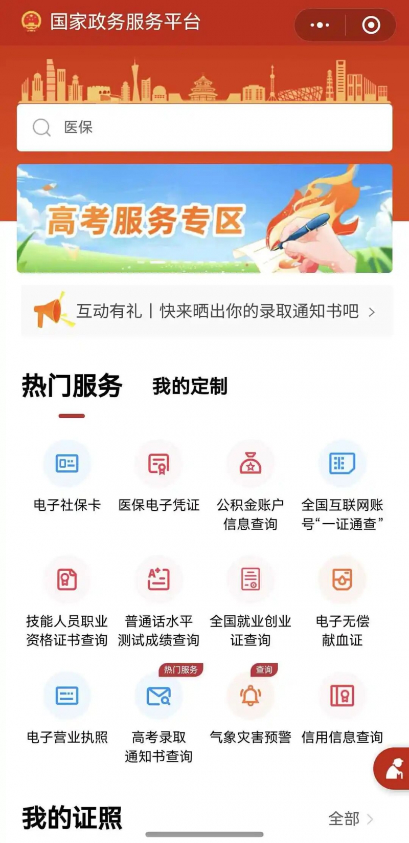 微信登录“电子社保卡”,搜索“职业技能等级证书查询”。