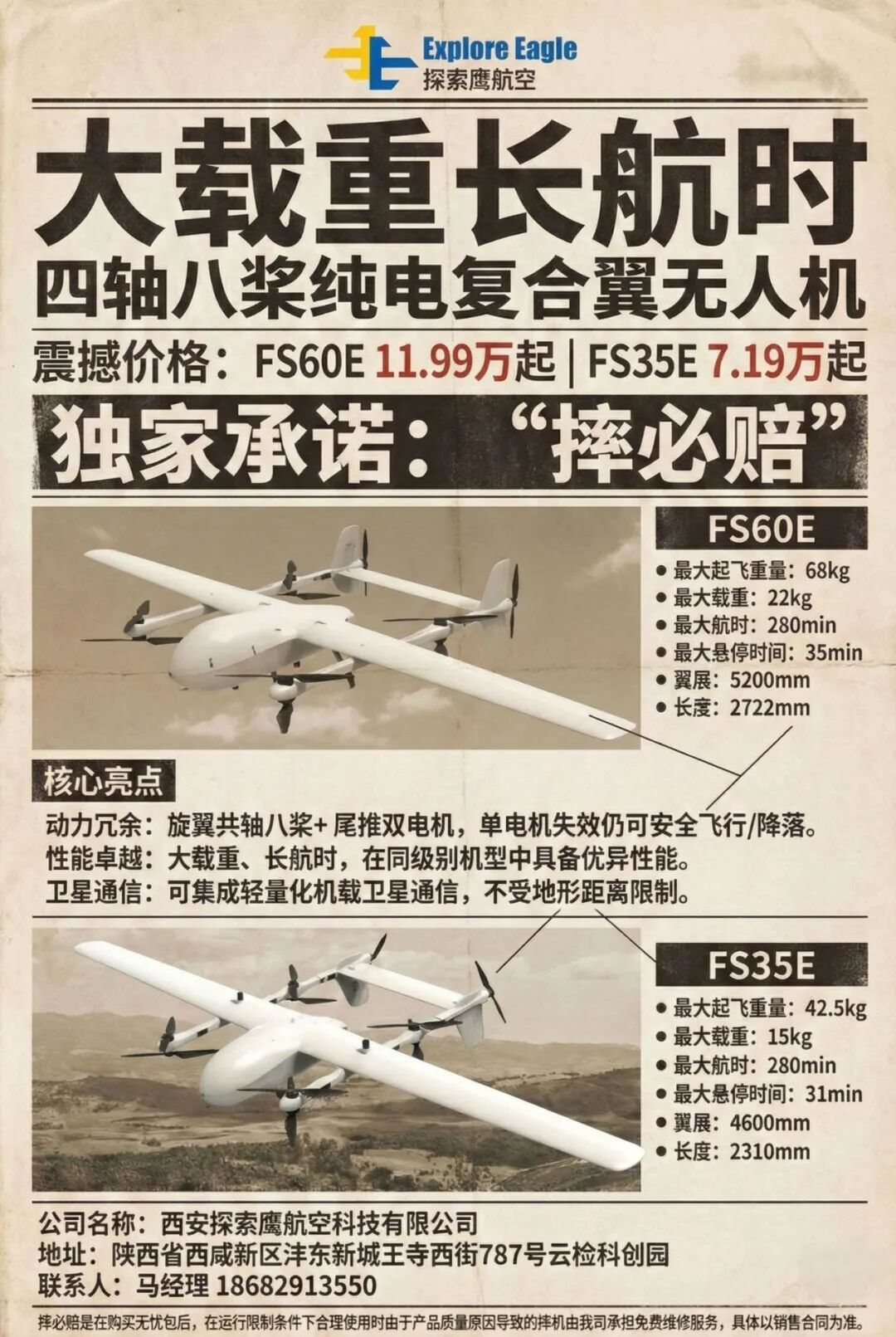 探索鹰航空推出两款高可靠性长航时大载重无人机,为无人机应用提供性能优异、超高性价比的飞行平台。