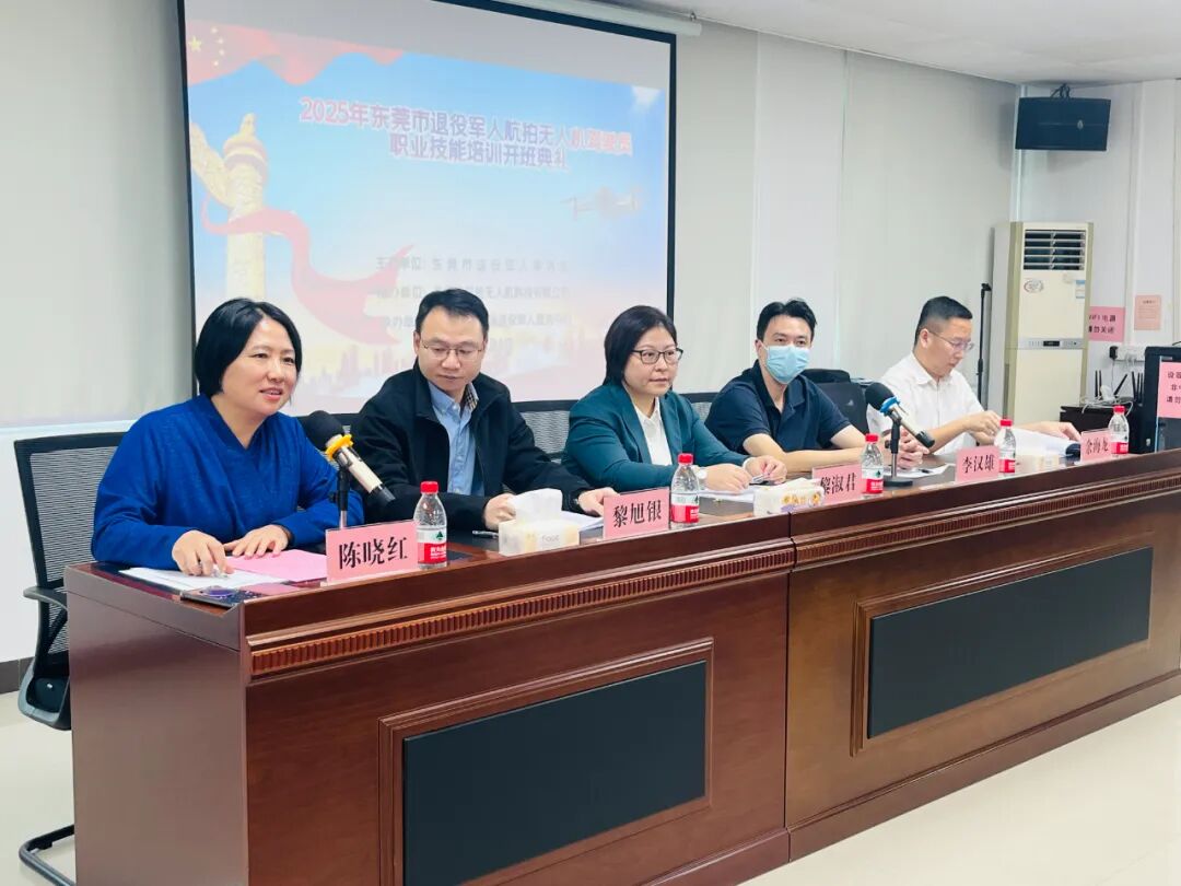 2025年12月8日,“东莞市退役军人航拍无人机职业技能培训开班典礼暨创业就业专场招聘会”在中堂镇潢涌影剧院顺利举行。本次活动由东莞市退役军人事务局主办,东莞市中堂镇退役军人服务中心、东莞市异能无人机科技有限公司承办,旨在为东莞市退役军人提供专业技能培训,搭建就业创业服务平台。