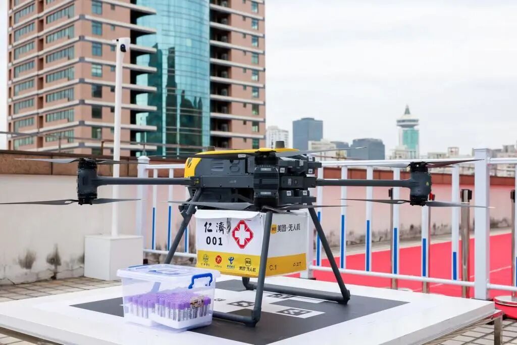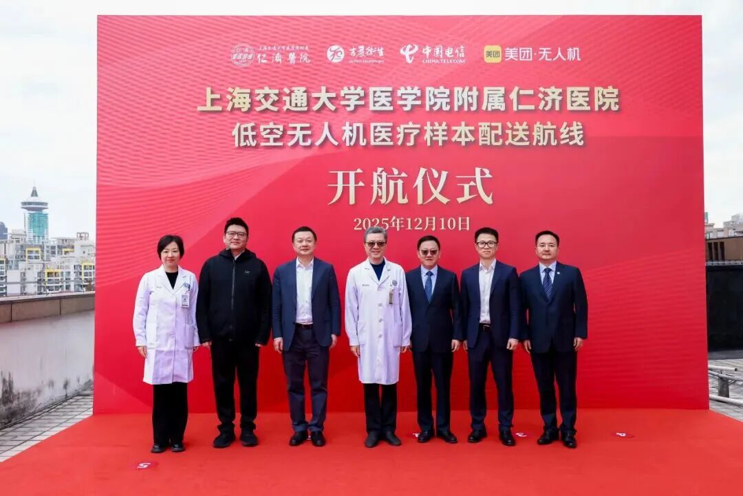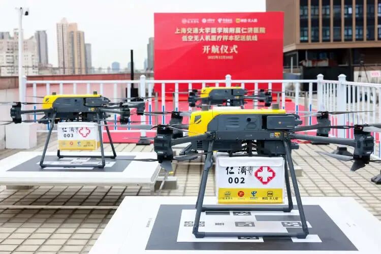 随着一声令下,12月10日上午9点,上海交通大学医学院附属仁济医院东院9号楼楼顶的医疗样本无人机专用停机坪上,载着医疗检验样本的“仁济001号”无人机瞬间腾空而起,稳稳地按照预先设定好的路线爬升至百余米高度后,飞向14.5公里外的仁济医院南院。几分钟后,从仁济医院北院飞来的“仁济002号”无人机抵达东院起降场上空,并精准降落。医护人员迅速从无人机配送箱内取出医疗检验样本。这标志着上海市内首次医疗样本无人机配送“首飞”圆满完成,本市低空经济又多了一个医疗落地场景,也为医疗物流智能化发展翻开了新篇章。