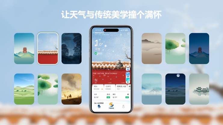 在数十万线上观众的见证下,看天App的12套国风皮肤焕新发布,看天App的界面将随着具体的天气,自动变化为对应的皮肤,突破传统天气App的视觉同质化瓶颈,让天气与传统美学撞个满怀。