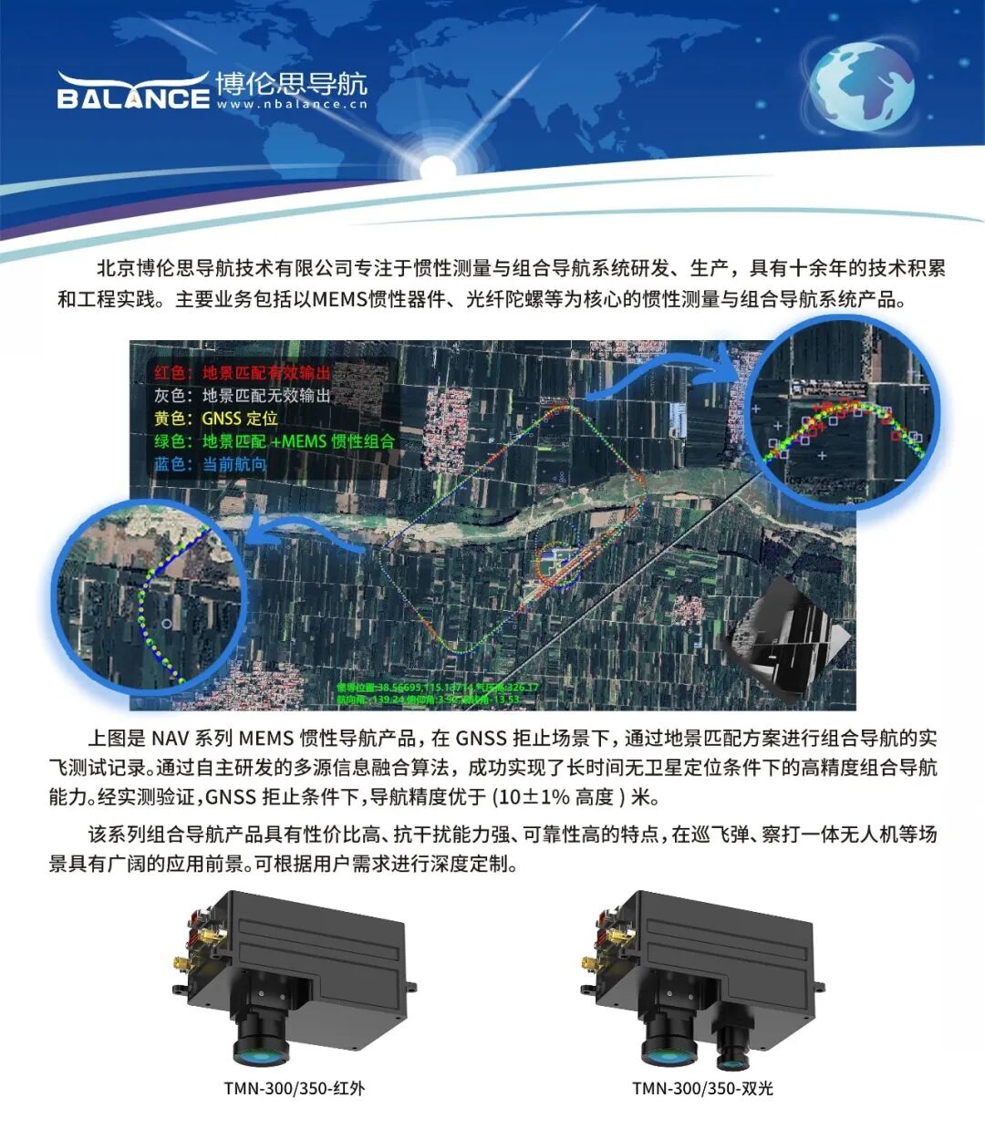 TMN-300/350系列低成本双光地景匹配+MEMS惯导组合导航系统,是一种通过实时拍摄地面图像并与预存数字地球对比来确定无人机位置的自主导航技术。其核心优势在于不依赖GNSS信号,在电磁干扰或信号屏蔽等复杂环境下仍能保持高精度定位,适合全天候和GNSS拒止场景。本系统结合了深度学习算法,能有效解决异源图像(如卫星图与实时图)的光照、季节差异问题,与惯性导航融合,形成"地景+惯导"的组合导航方案,广泛应用于无人机、巡飞弹等领域。