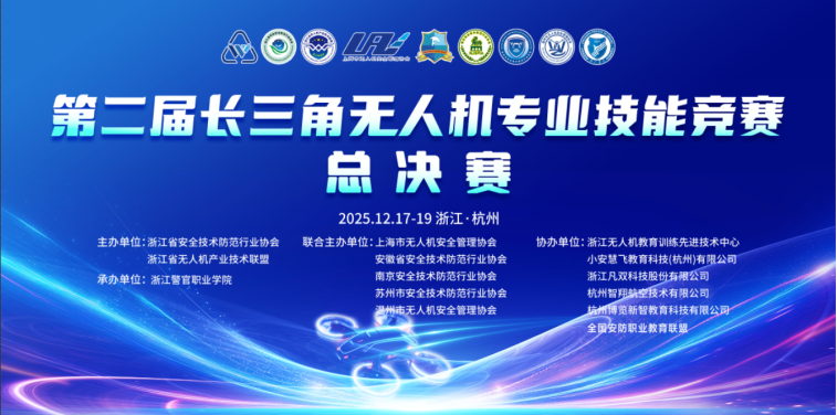 竞赛是在长三角无人机管理与应用合作机制下,由浙江省安全技术防范行业协会、浙江省无人机产业技术联盟主办,由上海市无人机安全管理协会、安徽省安全技术防范行业协会、南京安全技术防范行业协会、苏州市安全技术防范行业协会、温州市无人机安全管理协会联合主办,浙江警官职业学院承办,浙江无人机教育训练先进技术中心、小安慧飞教育科技(杭州)有限公司、浙江凡双科技股份有限公司、杭州智翔航空技术有限公司、全国安防职业教育联盟协办。经过长三角区域各省市初赛选拔,共有包括来自浙江、上海、江苏、安徽四只队伍50余名选手晋级决赛,共同角逐“长三角区域”的荣誉称号。
