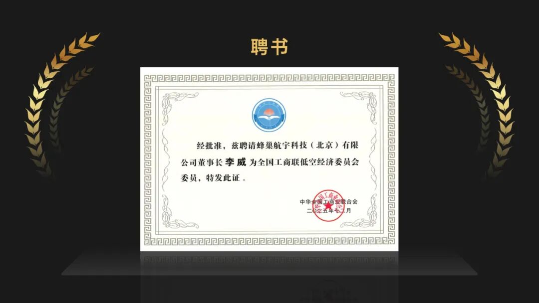 当选全国工商联低空经济委员会委员后,蜂巢航宇董事长李威将以委员身份积极参与行业研究、政策建言与产业协同相关工作,结合企业在项目实践和场景落地中的经验,为低空经济体系建设和行业发展提供专业支持。蜂巢航宇也将依托委员会平台,加强与政府部门、科研机构及产业伙伴的交流合作,持续推动技术创新与应用拓展,为我国低空经济高质量发展贡献企业力量。