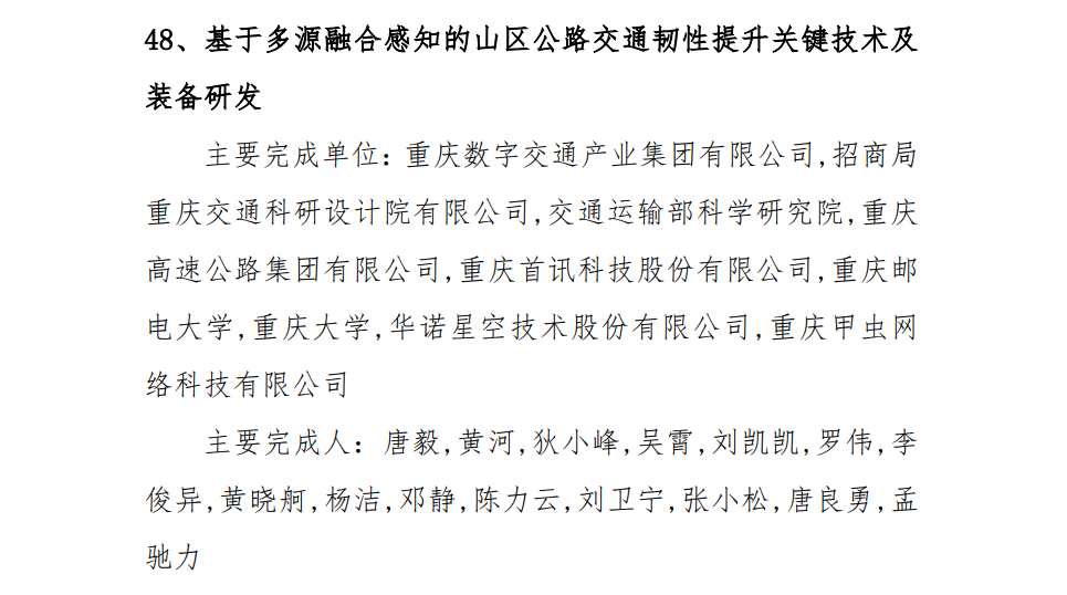 近日,由华诺星空联合申报的“基于多源融合感知的山区公路交通韧性提升关键技术及装备研发”项目,荣获2025年度中国交通运输协会科学技术奖,这一荣誉既是对项目技术创新性与实践价值的高度认可,更是对华诺星空在交通安全监测领域技术实力的充分肯定。