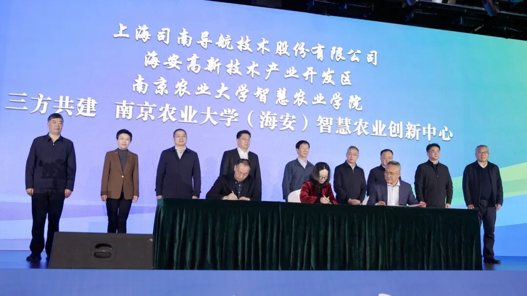 在这一背景下,《海安市智慧农业发展行动计划(2026-2028)》在大会期间正式发布,多项合作项目集中签约。司南导航、海安高新技术产业开发区与南京农业大学,三方共建的“南京农业大学(海安)智慧农业创新中心”正式启动。