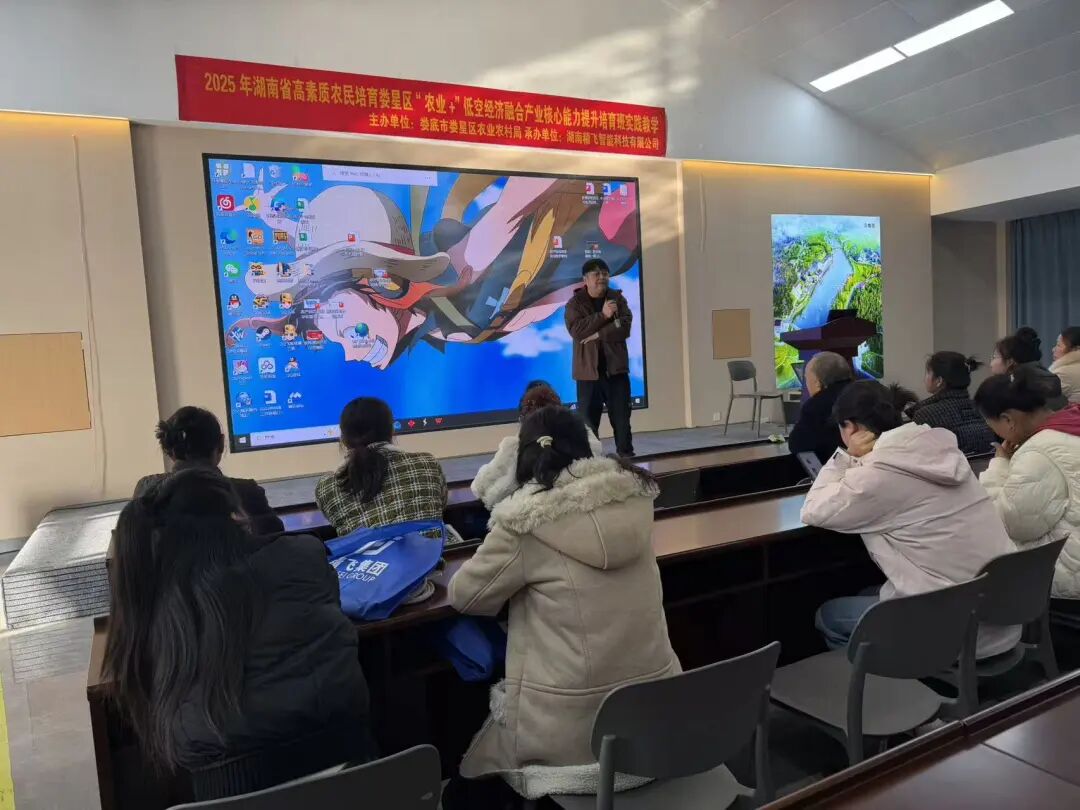 2025年12月28日,由娄底市娄星区农业农村局主办,湖南精飞智能科技有限公司承办的2025年湖南省高素质农民培育娄星区农业+“低空经济”融合产业核心能力培训班圆满结业。此次培训为期7天,共吸引了50名来自娄底市各农业领域的学员参加,旨在通过低空经济与农业的深度融合,提升农民的核心技能与实操能力,为乡村振兴注入新动力。