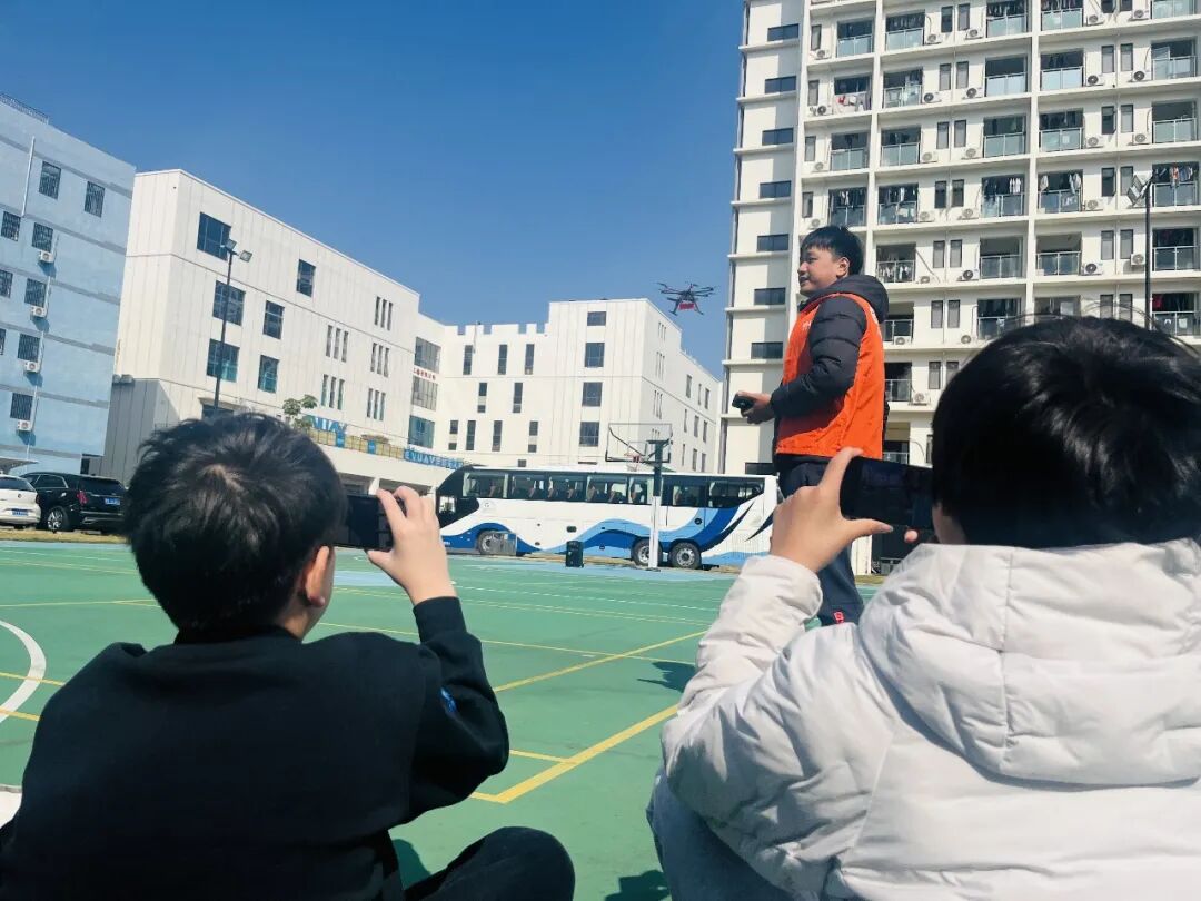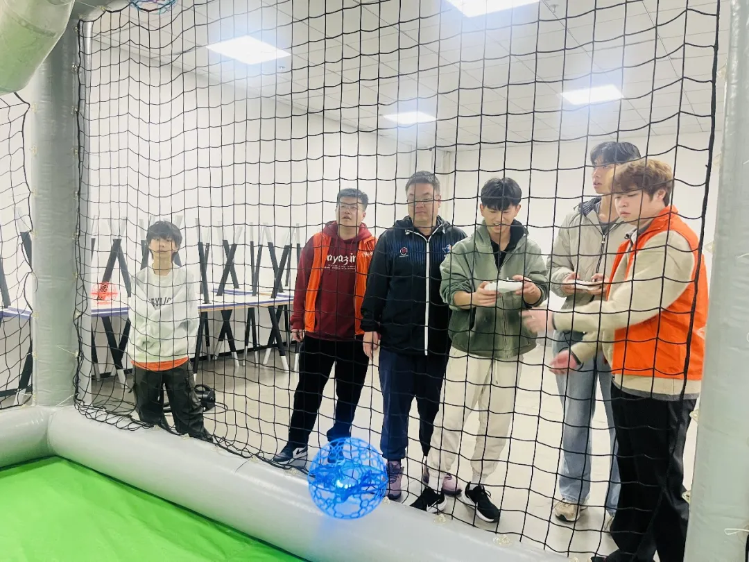 紧接着是无人机足球体验,导师介绍规则与技巧后,孩子们两两分组组成红蓝两队PK。比赛开始后,无人机嗡嗡穿梭追逐“足球”,红队进球、蓝队反击的精彩瞬间接连上演,场边加油声、呐喊声此起彼伏,热烈欢快的氛围感染了在场所有人。