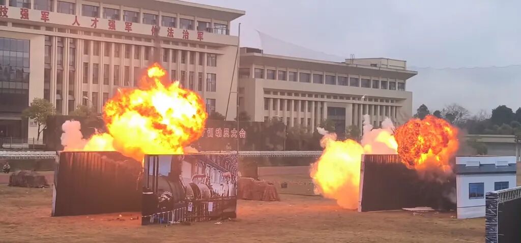演练现场,“敌情”突至:多架表演无人机与穿越机逼近西南电厂核心区域。危急时刻,部署的地面反制设备迅速启动,精准锁定目标,大部分表演无人机被成功驱离;然而,仍有两架穿越机突破防线,坠落在厂区内并引发爆炸,火光与浓烟瞬间升起,模拟灾情升级。