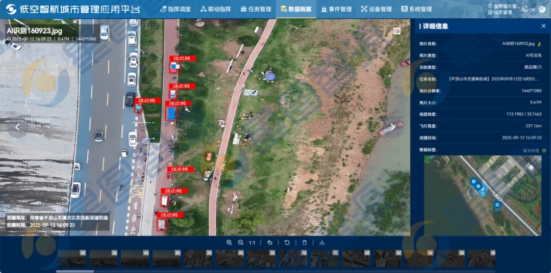 融合无人机高空视角、热成像数据与三维实景地图,打造“空中侦察—地面核查—指挥决策”的立体化指挥体系。依托多源数据深度融合与一体化可视化呈现,为城市管理领域领导提供全局、实时、可操作的态势感知支撑,助力制定更科学的巡查路线与资源调配方案,在复杂城市环境中显著提升决策精准度与治理效率。