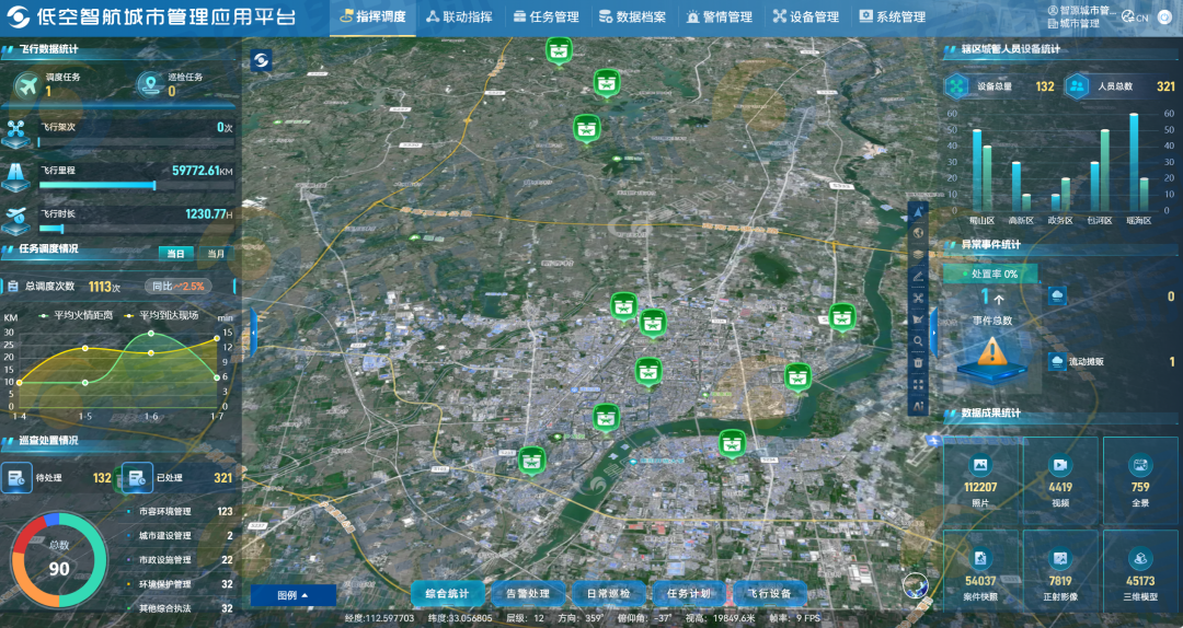 当为政府提供跨部门协同管理平台,实现城市低空飞行的全流程监管与智能决策,推动城市治理迈向“空地一体”的精细化时代。打破部门壁垒,实现城管、环保、交通等多部门数据互通与业务协同,构建城市治理“一盘棋”。