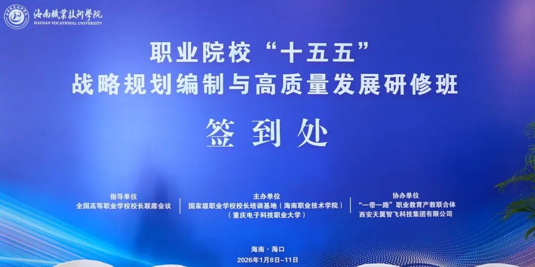 2026年1月8日至11日,由全国高等职业学校校长联席会议指导,国家级职业学校校长培训基地(海南职业技术学院)、(重庆电子科技职业大学)联合主办,“一带一路”职业教育产教联合体、西安天翼智飞科技集团有限公司联合协办的“职业院校‘十五五’战略规划编制与低空经济产学研协同发展研修班”在海口圆满落幕。