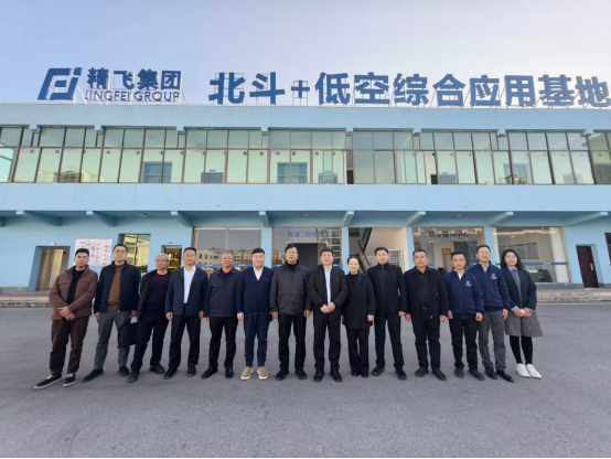 (考察团在精飞集团北斗+低空综合应用基地合影)