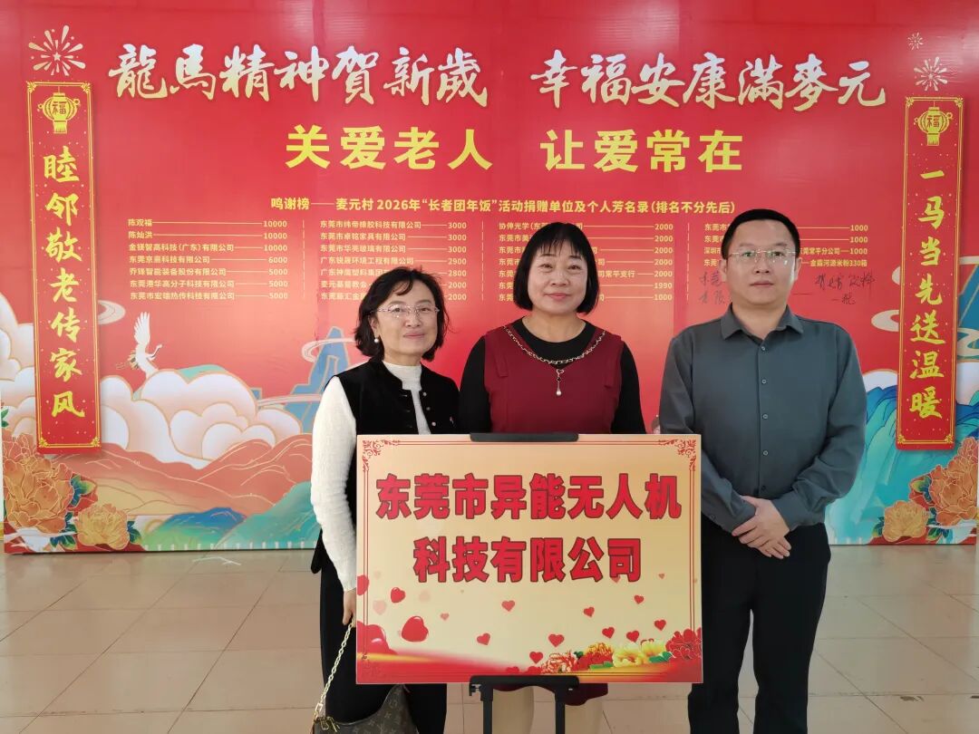 岁末寒冬,年味渐浓,敬老孝亲的温情在东莞常平镇麦元村悄然蔓延。近日,麦元村村民委员会发布 2026 年长者团年饭活动倡议书,呼吁辖区内企业与各界人士共襄善举,为全村 330 位长者(男满 60 周岁,女满 55 周岁)送上新春关怀。东莞市异能无人机科技有限公司第一时间响应号召,积极投身公益,以实际行动践行企业社会责任。