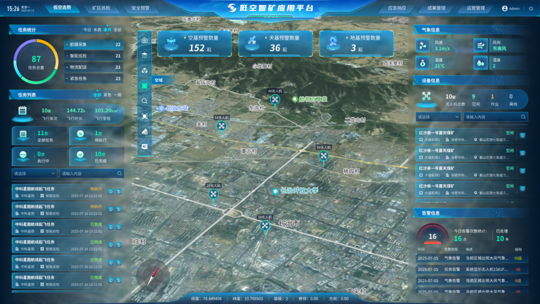 整合空域查询、违规预警、数据统计等全流程功能,实现“一站式”线上管理,响应速度与处置效率较传统模式提升,破解监管痛点。