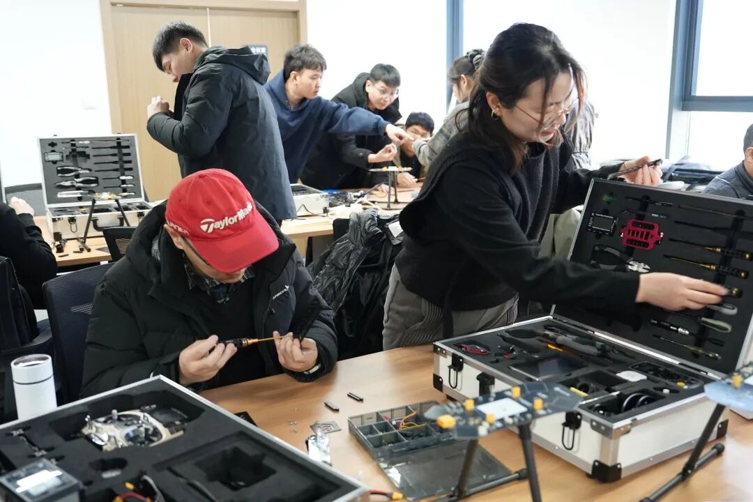 参训教师在天翼科技导师的带领下,参与了无人机系统组装调试、飞行平台操作、故障诊断分析、行业无人机飞行操控等真实岗位任务,并围绕课程资源开发、专业建设路径等主题展开深度交流,切实提升了教师的专业实践能力与教学转化水平。