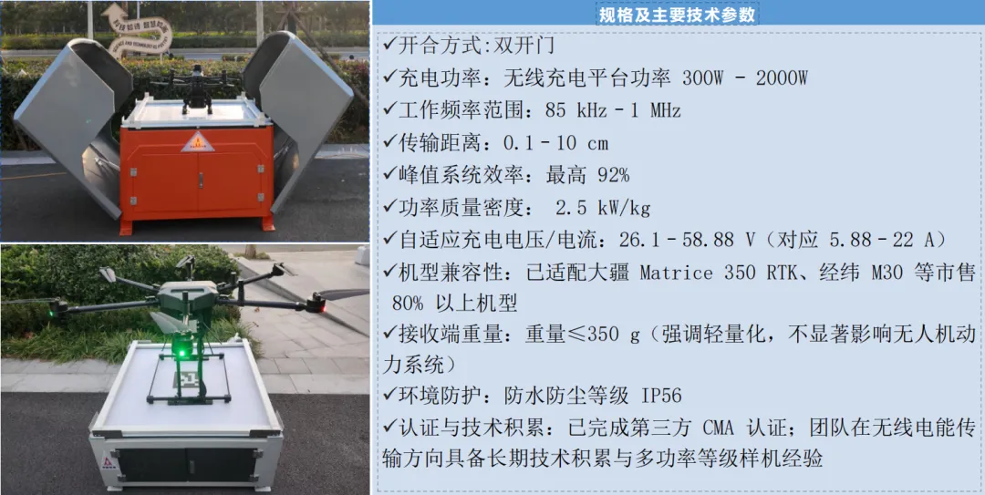 在性能表现方面,该系统在高效率能量传输与结构轻量化之间取得了较为均衡的工程效果,使其既能够满足工业级无人机的补能需求,又不会对飞行平台本身形成明显负载压力。
